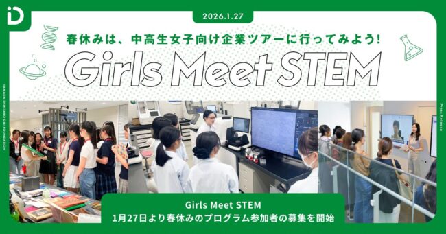 理系女子中高生の進路支援を行っている公益財団法人山田進太郎D&I財団(東京)が3月下旬から4月にかけ、STEM(科学・技術・工学・数学)分野で働く人や学生、現場に触れるツアー「Girls Meet STEM」を開催します。全国の企業や大学、研究所などを訪れ、見学・体験したりSTEMで活躍する女性社員、研究者らとの座談会を行ったりするプログラムで現在41のツアーを用意、オンラインツアーもあります。参加無料で、2月25日まで参加応募を受け付けています。
